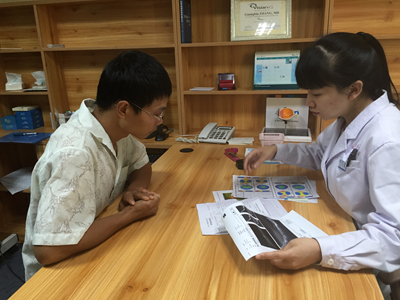 白内障科的王晶博士在现场为患者们介绍高度近视与治疗方法,并为患者讲解眼部检查结果。有患者当场就预约了手术时间,准备摘镜。