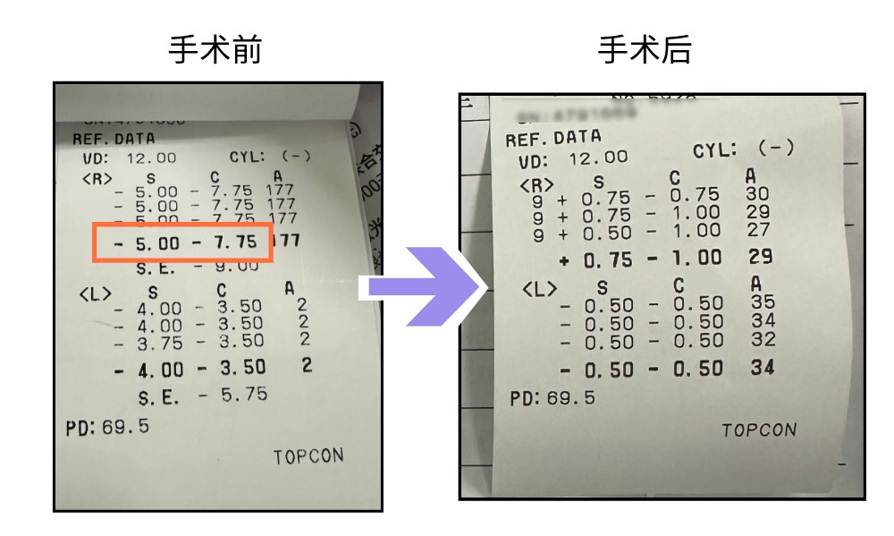 手术过程精准流畅,术后当天下午复查,他的裸眼视力已跃升至0.8。
