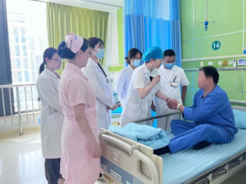 术后,老白激动地握住潘院长的手,向医疗团队表达感谢