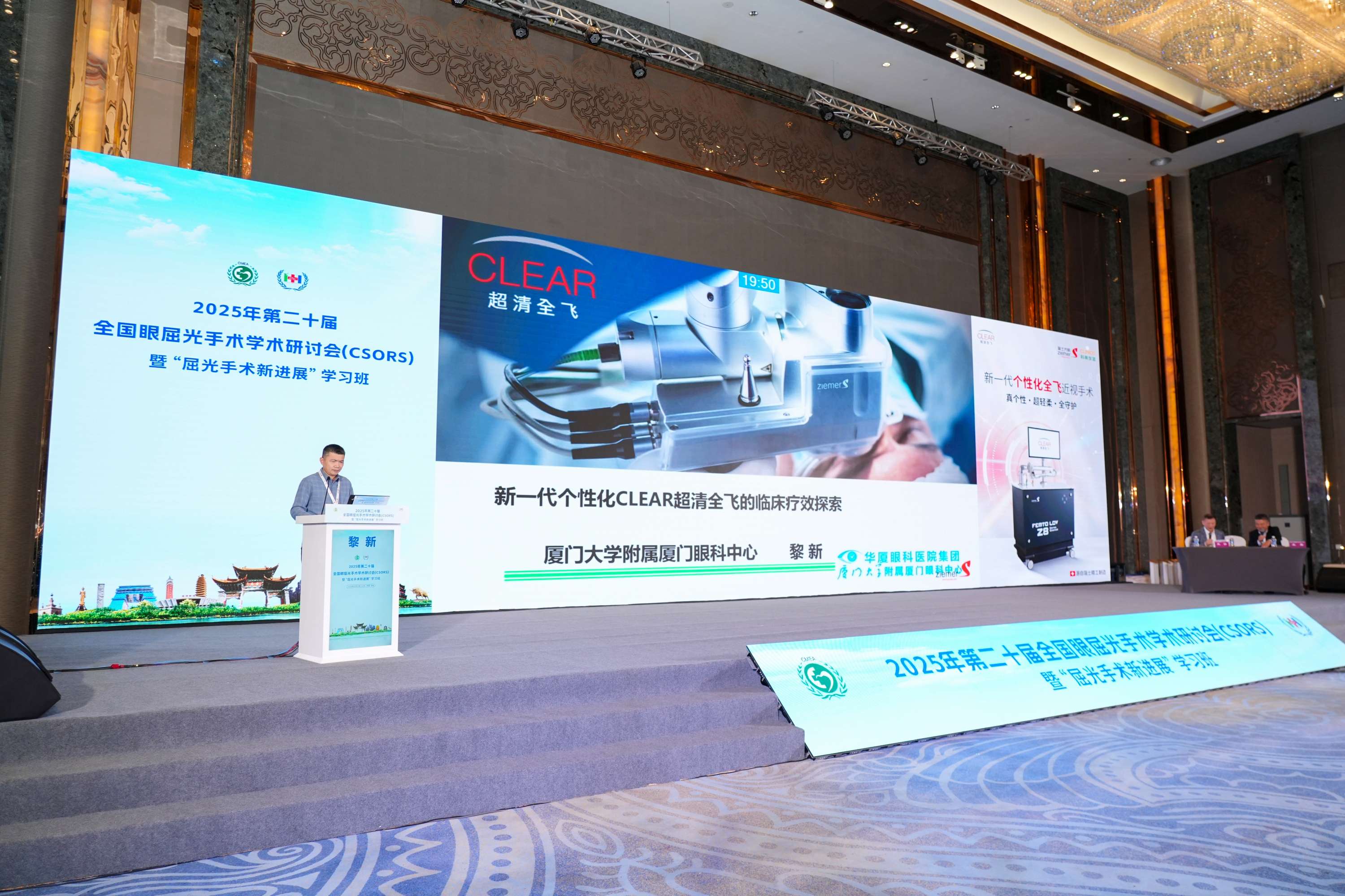 在备受瞩目的“新一代屈光解决方案”专题环节,我院屈光专科黎新主任作为核心讲者,向与会同仁系统介绍了新一代CLEAR超清全飞技术。该技术作为全球第二种角膜基质透镜取出手术(KLex)解决方案,自问世以来便备受关注,并于2025年4月正式获得中国NMPA批准,为国内屈光不正患者带来了新的希望。