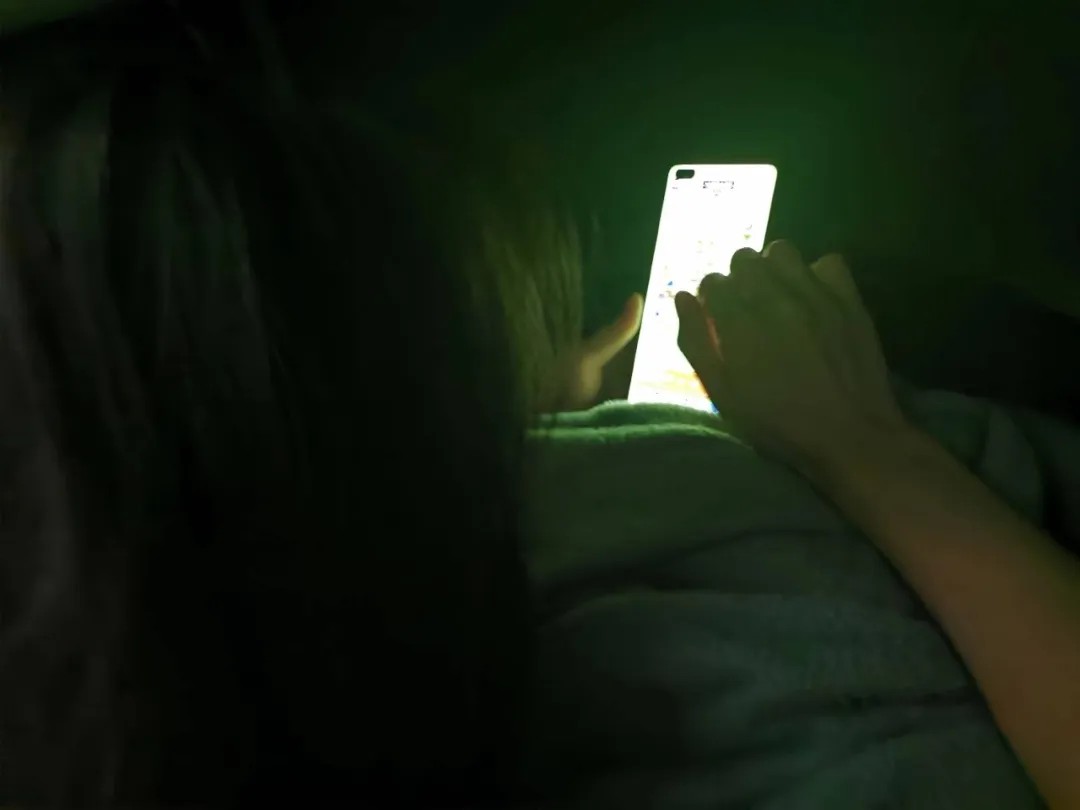 卧室大灯全关,只有手机屏幕亮;侧躺、俯卧,单眼受压刷到入睡。